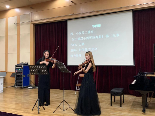 巴赫作曲的小提琴二重奏《d小调双小提琴协奏曲》第二乐章在赵依蕤与吉亚卓精彩演奏下,使观众感受到了巴洛克时期巴赫小提琴协奏曲中双提琴模仿、重复、模进、对位等复调思维。