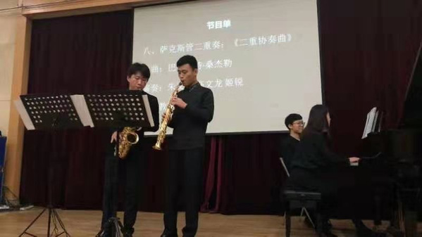 萨克斯二重奏《二重协奏曲》情绪高亢,风格热烈,在快速华丽的三十二分音符连续进行中,庄重的主旋律与伴奏形成鲜明对比,深受观众喜爱。
