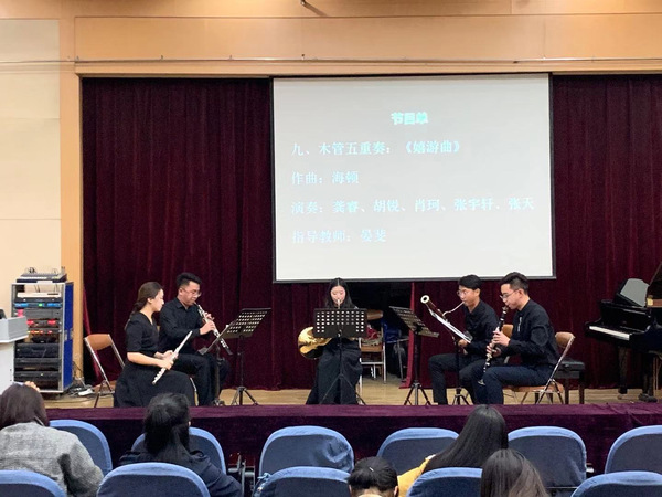龚睿、胡锐、肖珂、张宇轩、张天为观众带来的木管五重奏《嬉戏曲》动情的演绎,流畅的旋律,轻灵婉约的每个音符都体现了古典主义时期音乐的不朽魅力,精致自然的音乐旋律久久回荡在欣赏厅内,使观众沉湎其中。