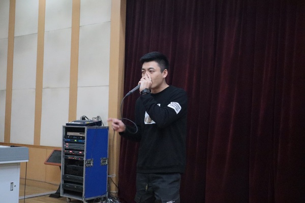 随后孙老师为观众讲解了阿卡贝拉与合唱的区别以及各个阶段的发展历程,其中特别提到了当代的阿卡贝拉多以流行音乐改编的形式出现,受众也更加广泛,孙老师提到阿卡贝拉中BASS声部的重要性以及其稀缺程度,最后孙老师请乐团中担任VP声部(B-BOX)的王毓麟上台做现场展示,精湛熟练的技巧惊艳了全场,与观众的互动教学更是为通识课增添了许多趣味性,活跃了现场的气氛。