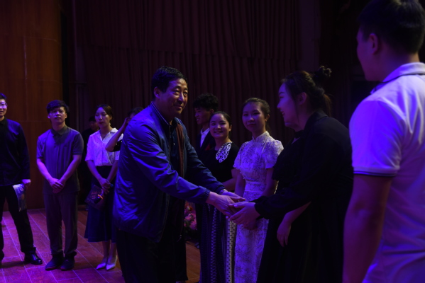 (迭部县教科局杨局长与演员们亲切交流)