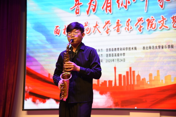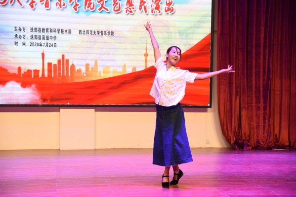 24日晚,实践队员在迭部高级中学礼堂举办了“音为有你,印象迭部”——威尼斯9499登录入口welcome登录入口威尼斯文艺惠民演出,迭部县教育与科学技术局各位领导以及县城各所学校的老师、同学们共计三百余人观看了演出。晚会内容丰富,形式多样,队员们以专业的水准和精湛的技艺赢得现场观众的热烈掌声和阵阵喝彩,演出结束后,各位领导与实践队员一一握手,合影留念。