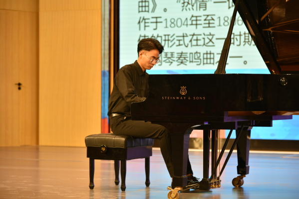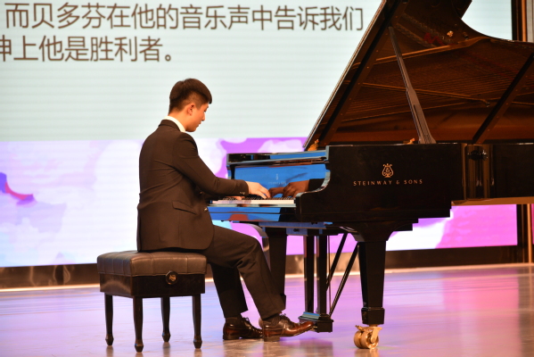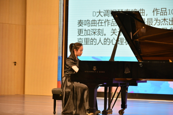 2018级音乐表演二班朱洲彤同学演奏了贝多芬成熟时期代表作《热情”奏鸣曲》第三乐章。