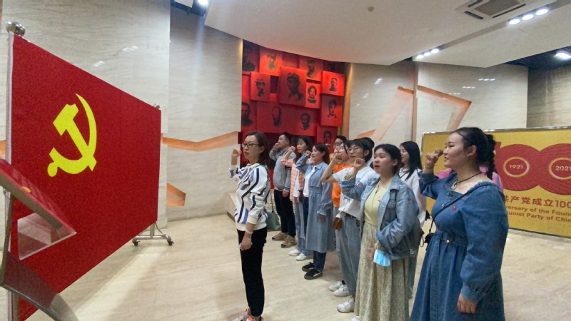 活动伊始,同志们在党旗下齐唱歌曲《没有共产党就没有新中国》,用歌声向革命先烈致敬。郜鹏老师带领党员同志重温入党誓词,不忘初心,感怀先烈,筑牢爱国主义理想信念。