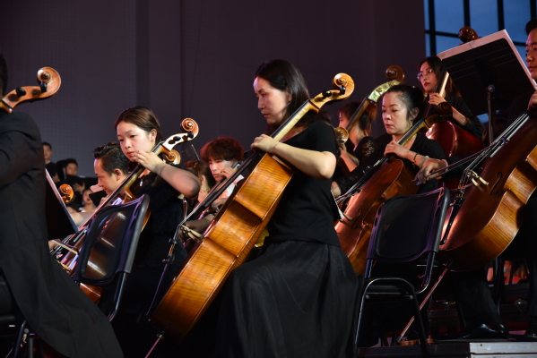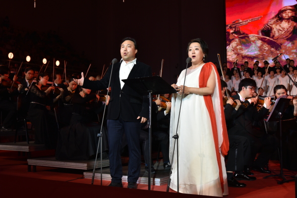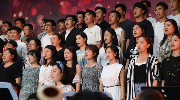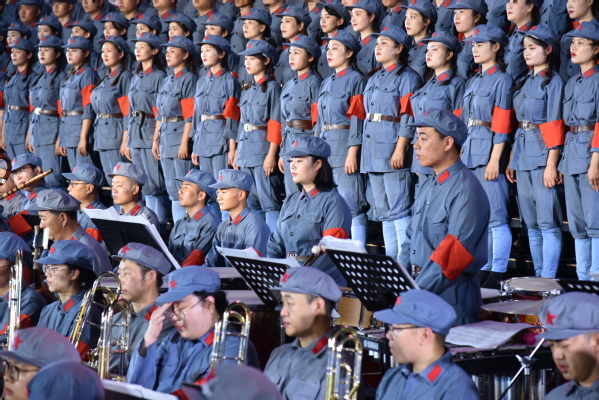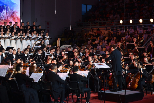 最后,省委常委、省委宣传部部长王嘉毅等领导与全场师生共同合唱《没有共产党就没有新中国》。大家高唱凯歌、意气风发、铿锵有力的唱腔一浪高过一浪,一一次点燃了听众内心对党对祖国的热爱之情,使音乐中伟大的人民形象更加立体;使伟大的中国共产党的领导形象更加生动,升华了中国共产党对中华民族的伟大意义。