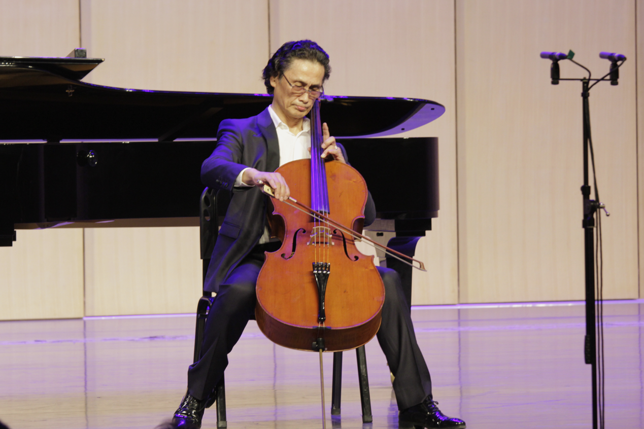 大提琴演奏家于玮教授奏出圣桑的管弦乐《动物狂欢节》第十三首《天鹅》时,优雅低吟的旋律流淌进心底,仿佛那忽明忽暗的镁光灯也诉说着天鹅的情感。