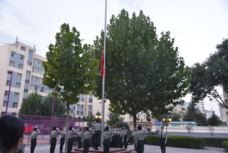 上午7时,在所有人的注目下,英姿飒爽的国旗护卫队队员护送鲜艳的五星红旗,迈着坚定的步伐进入会场,来到旗杆下。伴随着庄严的《中华人民共和国国歌》,全体肃立,升国旗,奏唱国歌,行注目礼。学生纷纷感慨,我们生在红旗下,长在春风里,目光所致皆为华夏,五星闪耀皆为信仰,此生不悔入华夏,来生还做中国人。