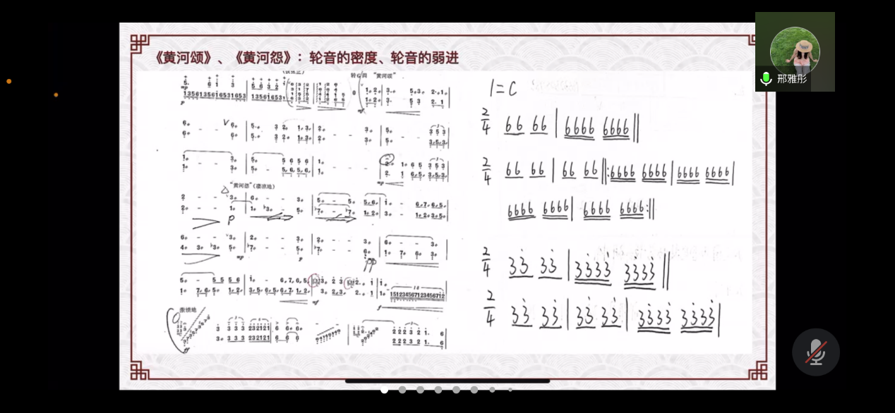 邢雅彤同学为大家讲解了由著名音乐家冼星海的《黄河大合唱》改编而来的扬琴作品《黄河》,在极具颗粒性的音符以及扬琴轮音的演绎下,展现了黄河滚滚、奔流不息的壮观景象,歌颂了中华民族源远流长的光荣历史和中国人民坚强不屈的斗争精神。