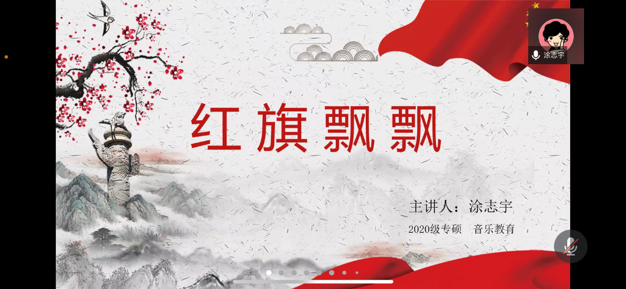 涂志宇同学用新颖独特的方式,以五星红旗的由来和含义为引入,为大家讲述了歌曲《五星红旗》背后的故事。歌曲《五星红旗》表达了对五星红旗的无限赞美之情,歌曲旋律优美、大气、庄严、动听,易被大众所接受;歌词虽简单,但却道出了人们的心声,写出了中华民族伟大的奋斗历程。