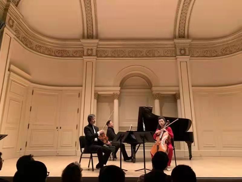 随后,姜老师为我们解析的他创作的《钢琴三重奏——戏韵》,《戏韵》是为洛克三重奏乐团(RUC,中国人民大学welcome登录入口威尼斯音乐表演系)而作,这部委约作品于2017年10月27日在中国人民大学艺术学院音乐厅首演,之后分别在包括卡内基音乐厅在内的国家大剧院、国家图书馆音乐厅、CASSAT三重奏团(美国)2018-2019北美巡演、2019国家艺术基金扶持项目巡演等国内外多地演出,都获得了巨大的反响。在多年的创作中,姜老师一直秉承这样的原则:以中国传统文化为根,在母语语境下,追求个性化的音乐语言,创作个性化的音乐风格!《戏韵》来自中国传统的戏剧戏曲音乐,但不是哪一种戏曲剧种,主要是抓取戏剧戏曲的“魂”与“韵”,作品中小提琴可拟喻为“旦角”,大提琴为“生角”,这部作品将重奏的多声部思维与中国的旋律思维有机结合,将二者融合在一起,用西方的“术”凿中国的“器”,反之亦然。多声部思维,纵向结合是西方的,主题动机发展是西方的;音腔化,旋律的延伸展演是中国的,将两者有机结合;速度对位既是现代的,也是中国传统音乐中固有的,将二者结合并赋予新的式样形式。但看不出“凿”的痕迹,把技术藏起来,让观众感受音乐!