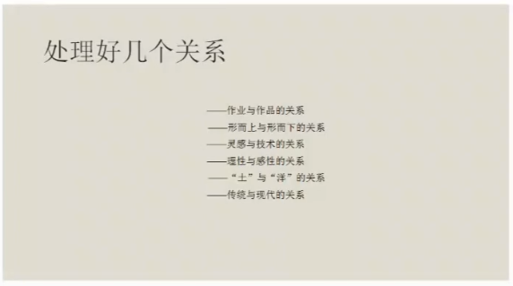 作为一个作曲家,要处理好几个关系,实际上,应该是一些,相对独立又相互关联的一些关系。第一个,就是作业与作品的关系,对于学生来说要先把作业写好,做和声,音与音的关系是怎样的?做配器,这个声部组别间的乐器法是怎样的?都是需要做好的工作,写作品,一定要整体把握,认真写作,要以一个创作者的心态面对听众。第二个,是形而下和形而上的关系,写作之前是形而上,作曲写作是形而下,我们要大胆假设,小心求证,在想象的时候可以漫天无际,而写作的时候一定要认真仔细。第三个,是灵感与技术的关系,在学习、研究和创作中,我们相信有灵感的存在,但在创作过程中,灵感的激发是通过技术的介入而出现的,在实际的音乐创作中,两者并存,不可分割。第四个,是理性与感性的关系,有了感性的灵光之后,一定要用理性使它具有逻辑性,一首歌曲听起来很好听不够,必须能说明这一段落用的什么手法,我的音乐如何展开,如何发展,我的结论是什么,这就是理性与感性的平衡点。第五个,是“土”与“洋”的关系,在创作中,我们不仅要了解“洋”的工具,也要了解“土”的内容,要掌握当地民歌、掌握民族音乐、掌握风土人情,要用我们自己的方式创作作品。最后,是传统与现代的关系,创作一定要把这两者关系摆到一个适度的位置上,传统,早已经有了,因此现代的东西就变得有可能,也就是说现代建立在传统之上,有了传统的根基,现代无论走多远,都有一个根,而不只是一个物品。