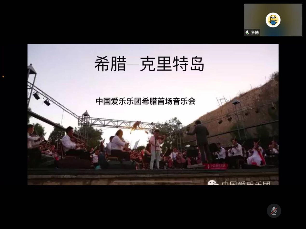 张博老师曾受聘于中国爱乐乐团,由此,他分享了自己在中国爱乐乐团时参加“丝绸之路”世界巡演的经历。巡演依次到达塔吉克斯坦——吉尔吉斯斯坦首都比什凯克——哈萨克斯坦首都阿拉木图——得黑兰——希腊。张博老师表示,在塔吉克斯坦演出时遭遇国家歌剧院长达几分钟的停电,而台上演员并没有受到任何影响,音乐从未间断。音乐会结束后还得到观众的高度认同和赞扬,称赞中国音乐家们具备高度的音乐素养。