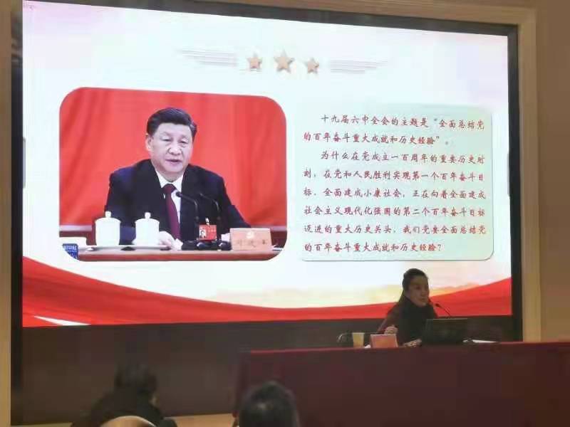 邓小娟同志从深刻认识《中共中央关于党的百年奋斗重大成就和历史经验的决议》的重大意义,党的百年奋斗的光辉历程和辉煌成就,中国特色社会主义新时代的历史性变革和历史性成就,中国中国共产党百年奋斗的历史意义和历史经验,以史为鉴、开创未来的根本要求五个方面对党的十九届六中全会精神进行了全面系统的深入解读。