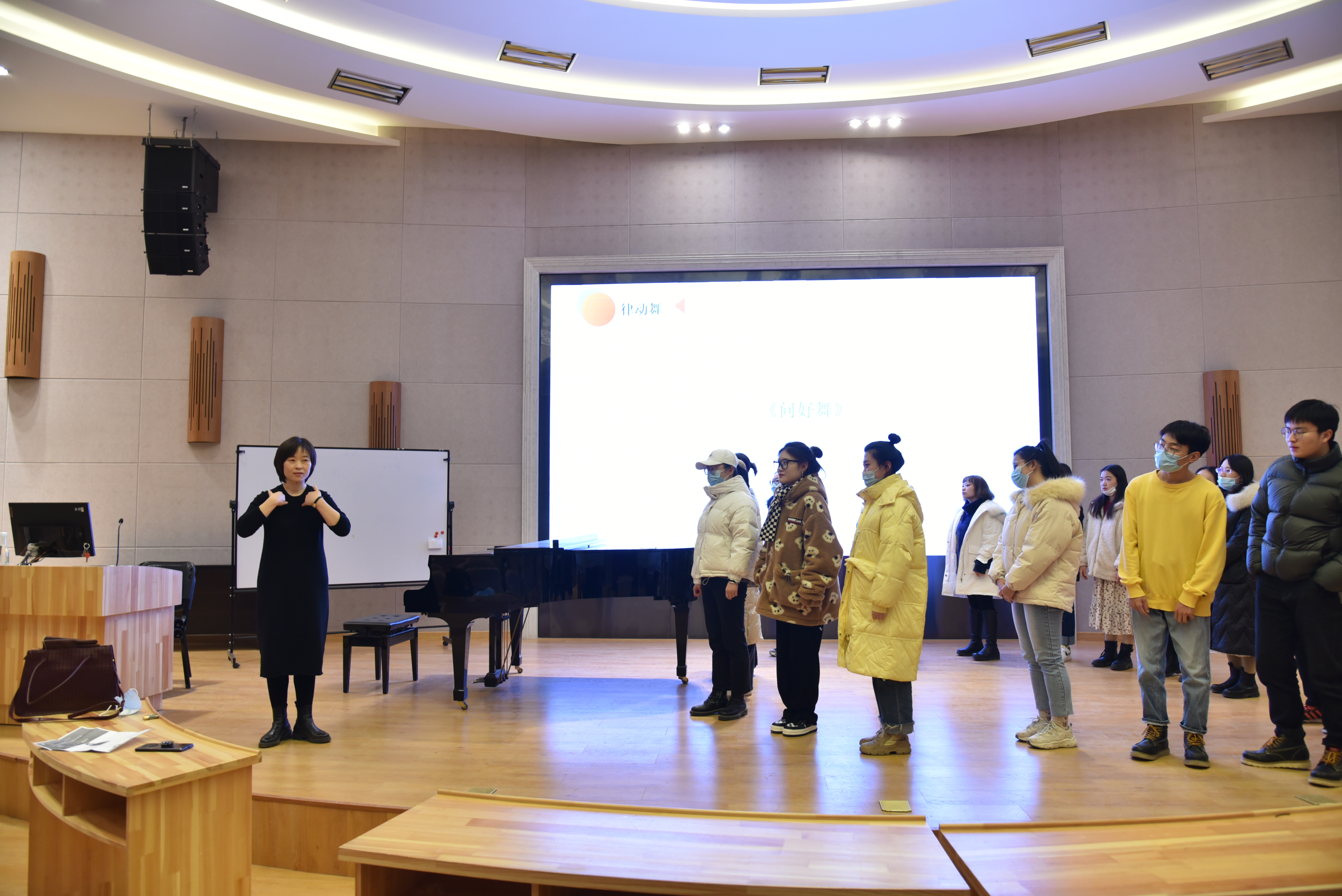整场讲座分为实践与理论知识讲解两个环节,由轻松、愉快的律动实践入手,组织课堂教学、引入理论课题。整场讲座充满愉悦性和趣味性。这种讲授环节的安排充分调动了在场师生的学习积极性,在沉浸式的课堂氛围中领略到柯达伊教学法的魅力。