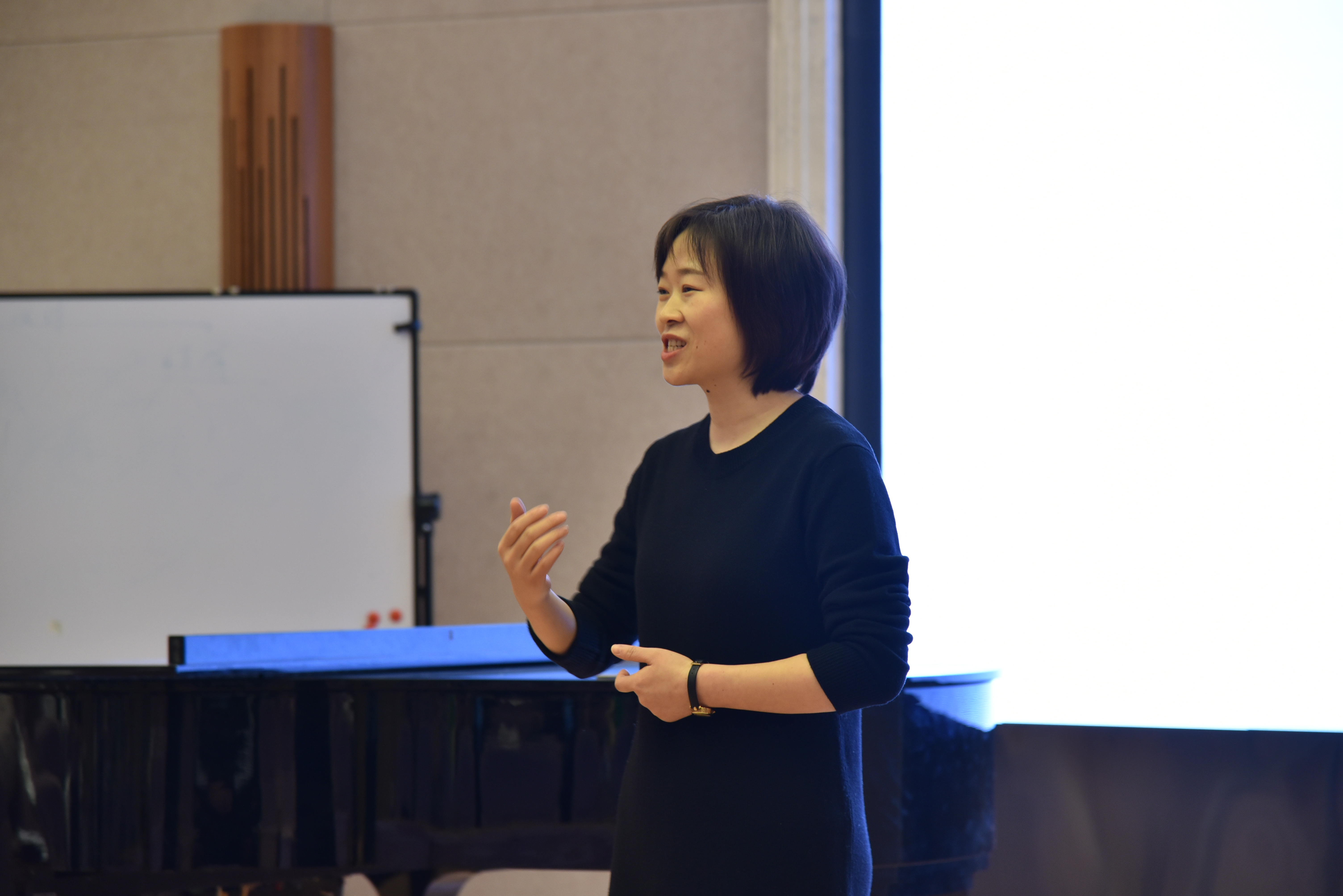 在理论开展的环节当中,钟老师介绍了柯达伊·佐尔坦本人和匈牙利柯达伊教学法在当地取得的成果以用柯达伊教学法在世界各地的传播发展概况。柯达伊教学法是在总结、吸收欧洲传统的优秀音乐教法基础之上,结合本民族自身的特点作以适应性调整,并使这个教学法系统化、理论化,从而形成了一套完整的音乐教育思想体系。