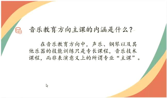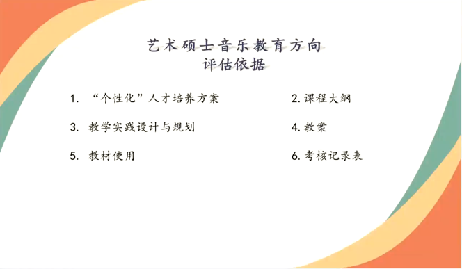 讲座由艺术硕士发展历程及音乐教育设立背景、音乐教育课程设置以及具体考核机制三大版块构成。