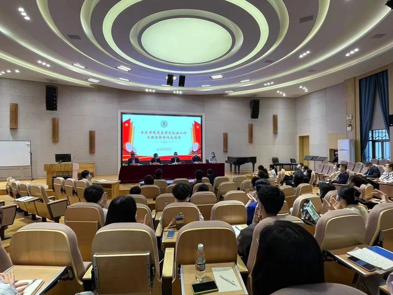 党委第三巡察组副组长李发舜代表学校党委向学院师生传达学校2022年就业相关工作安排,要求学院持续做好访企拓岗、“两个一”活动、就业实习基地项目申报、重点人群就业帮扶、组织专场招聘会、就业数据录入、家校联动、毕业生离校、杰出校友论坛等九项重点工作。