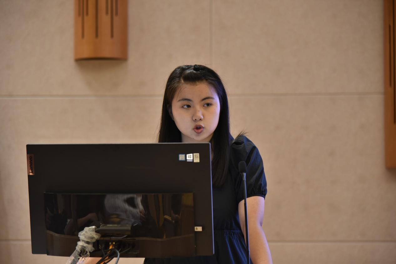 第四位上场的是李一炘同学,音乐教育专业,她的讲座题目是《将军令》。《将军令》起源于唐朝皇家的乐曲, 已经有一千多年的历史, 流传至今已有多种乐器演奏的曲谱与演奏方式。古筝曲《将军令》属于浙江筝曲。《将军令》原本是“四川扬琴”(曲艺的一种)的开场音乐,之后由浙派古筝大师王巽之在1957年移植改编而成,在改编的过程中使用了浙江筝曲典型的演奏技法,并尝试将其进行创新,其中结构曲式为含八板体、三体性的循环变奏体结构,带给人一种奔放激昂的感觉,当前已经发展成为古筝曲目中具有独特艺术风格的代表曲目。
