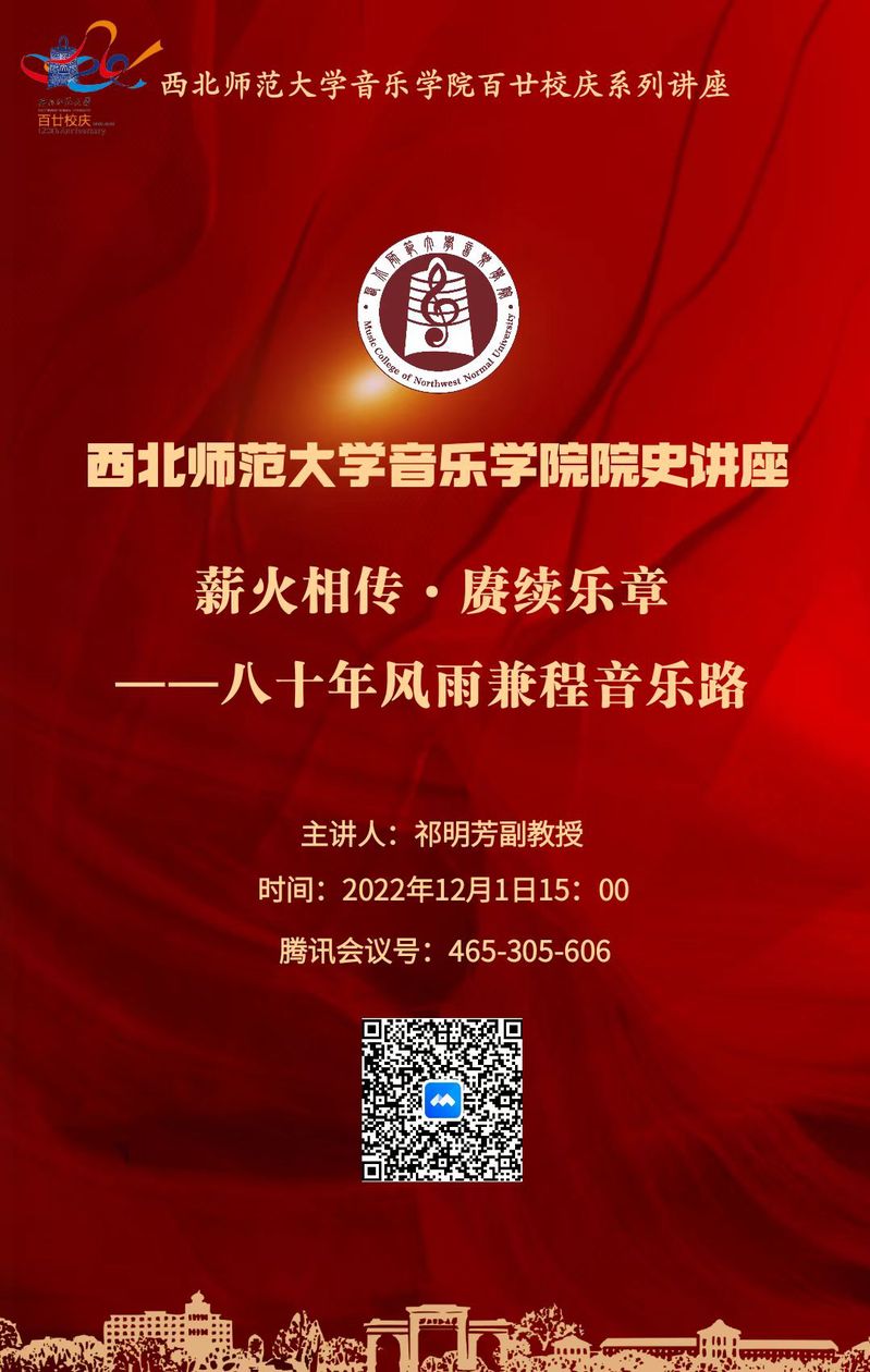 忆往昔峥嵘,迎百廿校庆。学习贯彻党的二十大精神,凝心聚力谱写welcome登录入口威尼斯发展新篇章。值威尼斯9499登录入口120周年校庆来临之际,学院特邀祁明芳副教授于12月1日15:00通过腾讯会议,为welcome登录入口威尼斯全体师生开展了“薪火相传·赓续乐章——八十年风雨兼程音乐路”welcome登录入口威尼斯院史专题讲座。旨在回望八十多年来威尼斯9499登录入口welcome登录入口威尼斯根沃水塔山下,坚守初心、笃定前行,潜心发展西部音乐教育的历史进程,了解校史校情、院史院情,传承校风校训,增强师生爱校爱院、荣校荣院意识,不断提升归属感和认同感,立志为学校学院的未来再创辉煌!