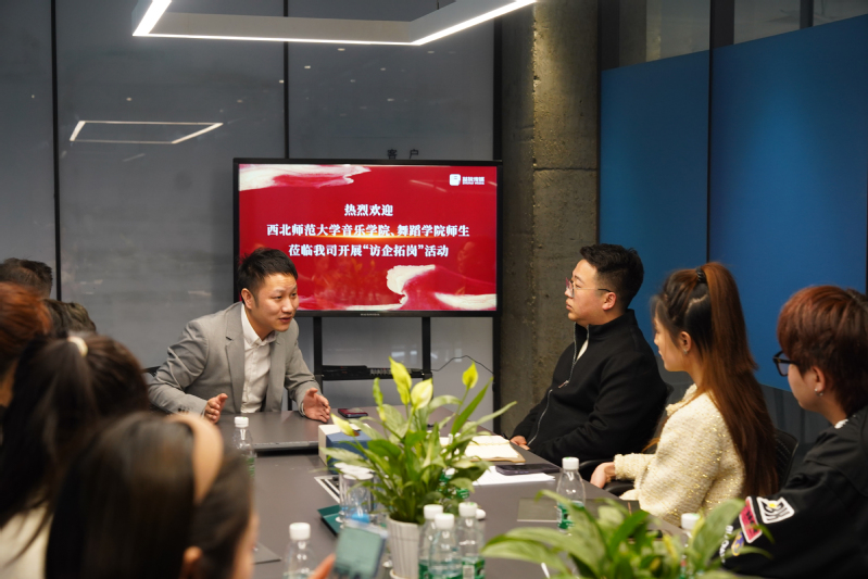 成都喆锐文化传媒有限公司负责人对学院一行到访表示欢迎,他从公司基本情况、资源配备、发展策略、核心优势、岗位需求等方面做了较为详实的介绍,并表示希望和学院有后续合作,期待有更多优秀毕业生加入,公司会为学院学生提供良好的发展平台。