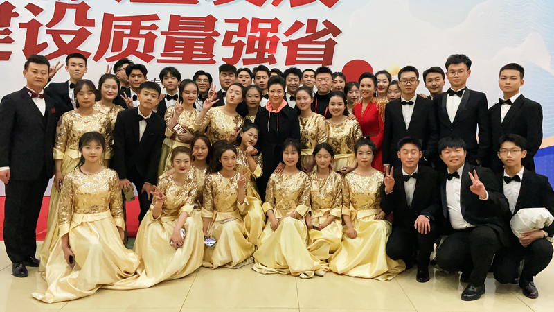 学院副教授、合唱团副团长赵鹏、张永君带领合唱团40多人参演节目《带着春天出发》《共圆中国梦》等,其中《带着春天出发》歌曲由院长盛鸿斌教授作曲。