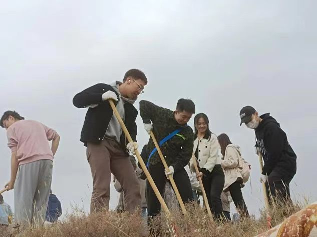 活动现场,学院党委书记段昱华进行现场指导,同学们两人一组、干劲十足。尽管衣衫被汗水浸湿,鞋子和裤腿上都沾满泥土,但大家依旧乐在其中,齐心协力挖掘植树坑位。