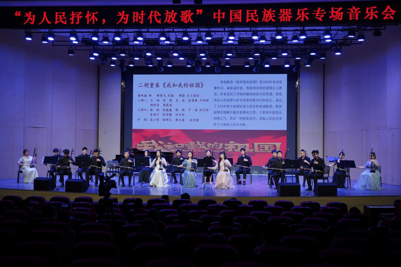 音乐会以“为人民抒怀,为时代放歌”为主题,以弘扬中华优秀传统文化、革命文化和社会主义先进文化为目的,精选多首人民群众喜闻乐见、极具代表的中国民族器乐作品,展现了大江南北的盛世风貌、中国人民拼搏奋斗的民族精神和为国为民的家国情怀。表演形式多样,分为独奏、重奏与合奏。王子毅的笙独奏《微山湖船歌》描写了微山湖的渔民湖上捕鱼的情景及丰收的喜悦;张昱佳的扬琴独奏《山丹丹花开红艳艳》 根据陕北民歌改编,作品运用扬琴独特的声音和技巧传达出了红军在长征胜利后经过陕北,看到了漫山遍野盛开着红艳艳的山丹丹花,劳动人民欢歌载舞迎接亲人的喜悦之情;张钰曼的柳琴独奏《毕兹卡欢庆会》快板部分欢快热烈,描绘了土家族人民庆祝节日、载歌载舞的欢乐场面;石路遥的笛子独奏《小八路勇闯封锁线》通过小八路骑马送一份紧急情报,冒着炮火通过敌人的封锁线时负伤坠马仍坚强完成任务的情节,来歌颂这位少年英雄。重奏曲目包括了竹笛重奏《喜相逢》、阮重奏《丝路驼铃》、琵琶重奏《天山之春》、二胡重奏《良宵》 、古筝重奏《梦回临安》、笙重奏《牧羊山歌》、扬琴重奏《旱天雷》等,将我国不同地域的民族器乐传统、改编及创作曲目完美地呈现在观众面前,曲调时而宁静如水,时而暗波涌动,时而惊涛骇浪,将观众的思绪牵引至祖国的每一寸土地。由惠韵璇、宋佳文等人演奏的古筝重奏曲《蝴蝶与蓝》与由李明涛、徐博、樊宗淳等人演奏的传统吹打乐《打枣》形成了鲜明的对比,前者描绘了蝴蝶化茧成蝶,翩翩起舞的宁静景象,后者运用乐器演奏模拟人声,具有强烈的生活气息,从侧面反映了北方人民丰富多彩的生活。最后,音乐会在二胡重奏《我和我的祖国》中落幕,表达了人们对伟大祖国的衷心依恋和真诚歌颂。