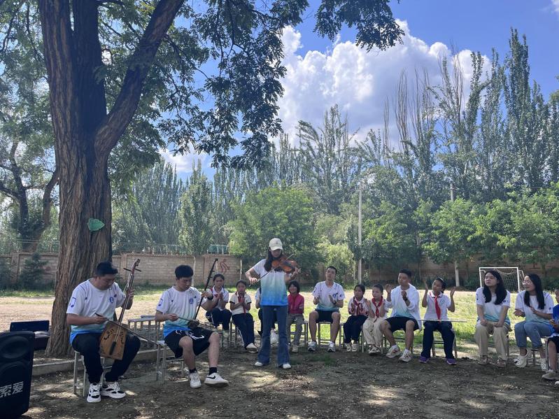 本次实践活动的支教授课内容包括歌唱教学、器乐赏析、手工创作、趣味体育、绘本阅读、课业辅导等,旨在向当地小学生普及音乐知识,培养学生的兴趣爱好,推动“五育并举”人才培养体系落地,促进学生德智体美劳全面发展。