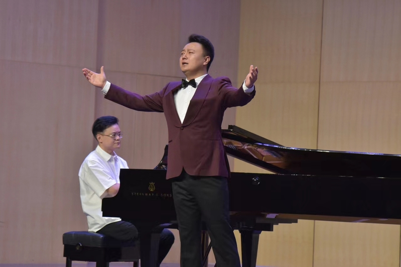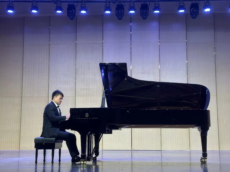 随后,民乐、键盘、声乐和管弦乐等青年教师进行了专业技能展示。田朝的二胡协奏曲《姑苏吟》和中音、高音板胡协奏曲《秦川行》引得现场师生一片掌声;张世麟带来了笙独奏《山寨之夜》《楚颂》;王明辉带来了笛子独奏《深秋叙》和尺八独奏《一声一世》;孙明霞用古筝演奏了《苍歌引》《高山流水(山东)》等曲目;林东方的钢琴独奏《拉赫玛尼诺夫前奏曲Op.32 No.5》《罗西尼——金斯伯格<快给大忙人让路>》和苏美娟的钢琴独奏《格拉纳多斯戈雅之画之情话》《李斯特音乐会练习曲轻盈》再次将现场气氛烘托到高潮。圆号教师李赟则演奏了《a小调奏鸣曲 加里亚德》《安妮·劳丽 普拉亚》;声乐教师者通演唱了《愿把欢乐倾注》和《嘉陵江上》,张永君演唱了《青玉案元夕》和《爱永在》。