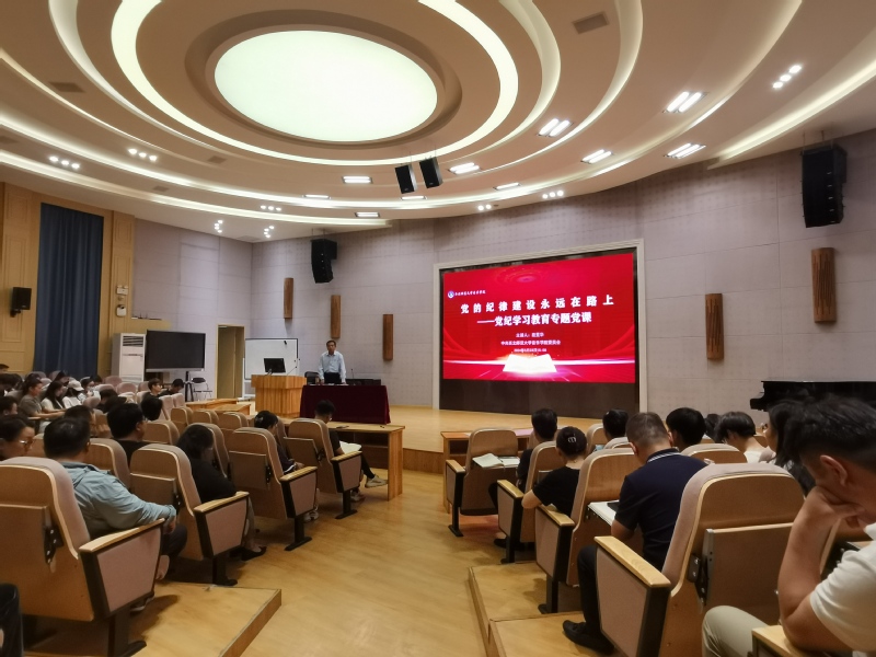 5月23日下午,学院党委书记段昱华在欣赏厅为学院全体教职工、学生党员、入党积极分子100余人讲授党纪学习教育专题党课《党的纪律建设永远在路上》。