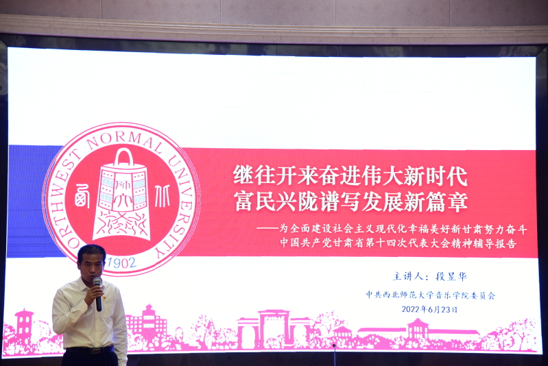 6月23日下午,welcome登录入口威尼斯党委书记段昱华在学院欣赏厅带领学院党员学习习近平总书记在庆祝中国共产主义青年团成立100周年大会上的讲话,同时做了题为“继往开来奋进伟大新时代,富民兴陇谱写发展新篇章——为全面建设社会主义现代化国家幸福美好新甘肃努力奋斗”的中国共产党甘肃省第十四次代表大会精神辅导报告,学院党委委员、各支部书记、各支部党员参加报告会。首先,段昱华带领大家认真学习领会习近平总书记对青年工作的论述,他指出青年工作是党的工作中一项战略性工作。学院的教师党员要拿出极大精力抓青年工作,做青年朋友的知心人、青年工作的热心人、青年群众的引路人;学生党员要积极发挥模范带头作用,引导广大同学听党话、感党恩、跟党走;要求团委、各支部要严格落实党建带团建制度机制,经常研究解决共青团工作中的重大问题,热情关心、严格要求团干部,支持共青团按照群团工作特点和规律创造性地开展工作。其次,在省第十四次党代会辅导报告中,段昱华指出,中国共产党甘肃省第十四次代表大会,是在向第二个百年奋斗目标进军的关键节点、喜迎党的二十大的历史时刻召开的一次重要会议。段昱华从过去五年极不平凡,全省各项事业取得历史性进步和成就;准确把握甘