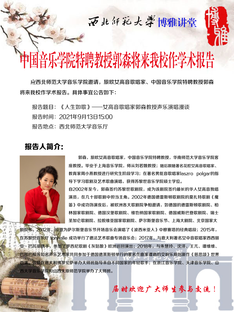 预告|中央音乐学特聘教授郭森于2021年9月13日15:00于威尼斯官网音乐厅作学术报告