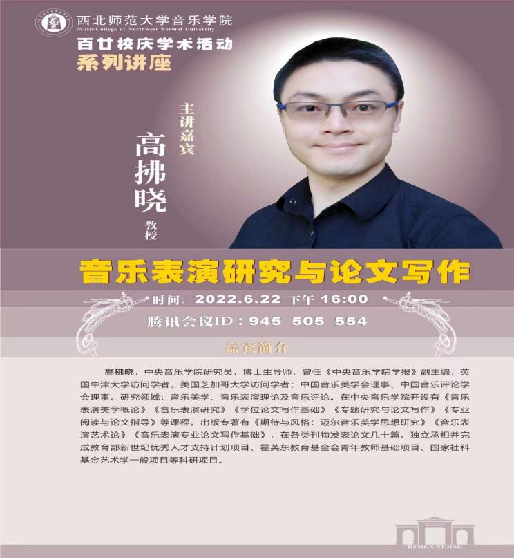 威尼斯9499登录入口百廿校庆学术活动系列讲座——高拂晓《音乐表演研究与论文写作》