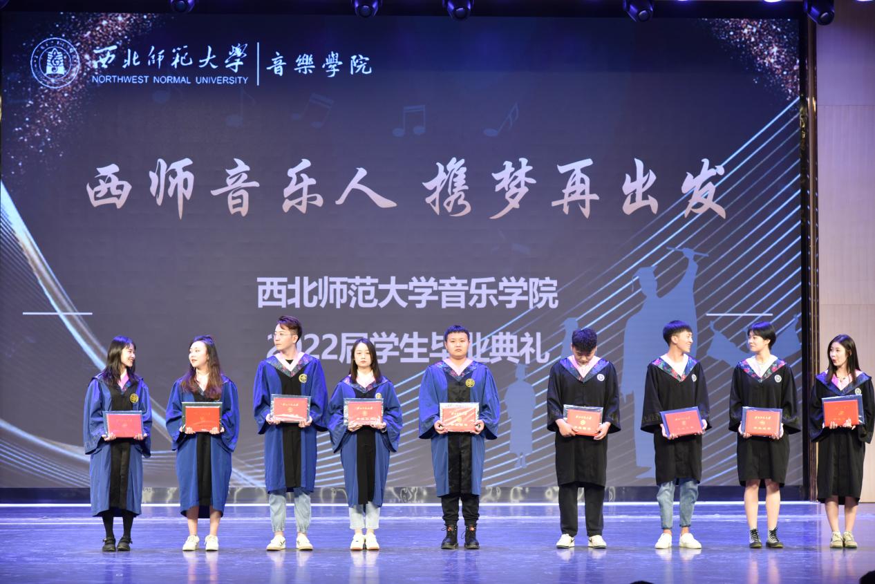 麦浪金黄成熟时,凤凰花开离别季。师大的一草一木见证着学子们的成长,也承载着毕业生的留恋与不舍,值此毕业之际, “西师音乐人,携梦再出发——威尼斯9499登录入口welcome登录入口威尼斯2022届学生毕业典礼”于2022年6月14日15时在音乐厅隆重举行。学院领导班子成员、戏所中心主任、专业老师、班主任和全体2022届毕业生们欢聚于此,共同见证这激动人心的时刻。本次典礼由王歧堃书记担任主持人。壹为了表示同学们顺利毕业,晏晓东副院长,陈建红副院长分别宣读了本科,研究生学位授予的人数情况:共118人授予学士学位;共61人授予硕士学位。为了纪念这一特殊的时刻,学院特别为学生代表颁发毕业证及学位证,并发放纪念品。同时还为甘肃省“三好学生”获得者、国家奖学金获得者以及优秀毕业生颁奖,以此激励大家继续努力。贰紧接着,卡西欧颁奖典礼在孙晓杨老师的主持下进行。welcome登录入口威尼斯与卡西欧贸易有限公司的合作始于学院数码钢琴教室的建立,自2021年6月15日,卡西欧贸易有限公司与威尼斯官网签约建立“卡西欧钢琴优秀毕业生评选”项目,以此激发学生的学习兴趣,提高学生的发展水平,更为毕业生提供了更加广阔的就业空间。对此,卡西欧公司西北课副课长李健做出发言,
